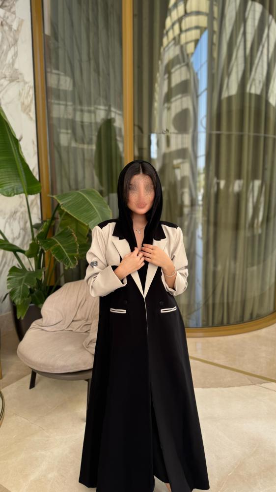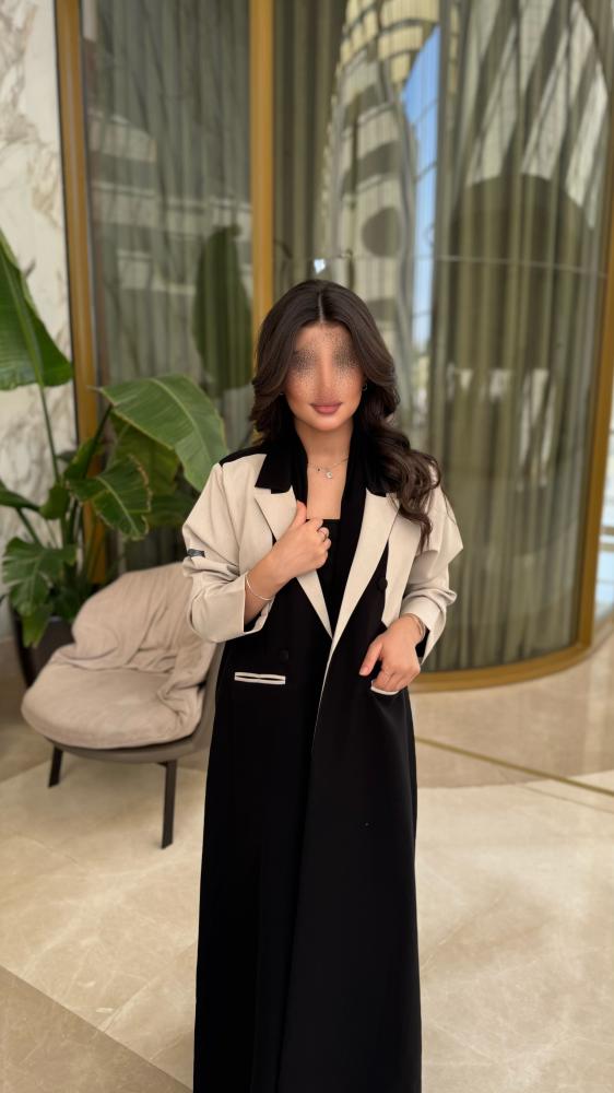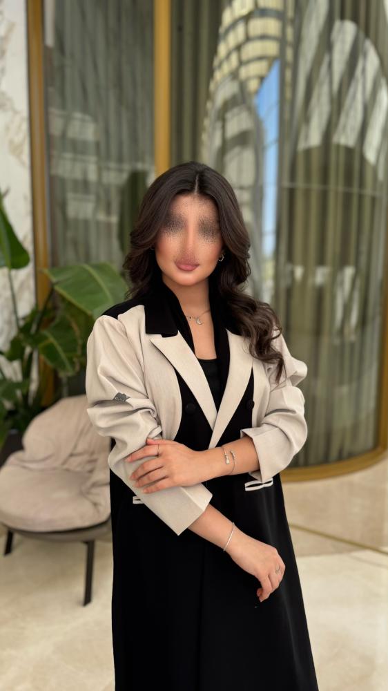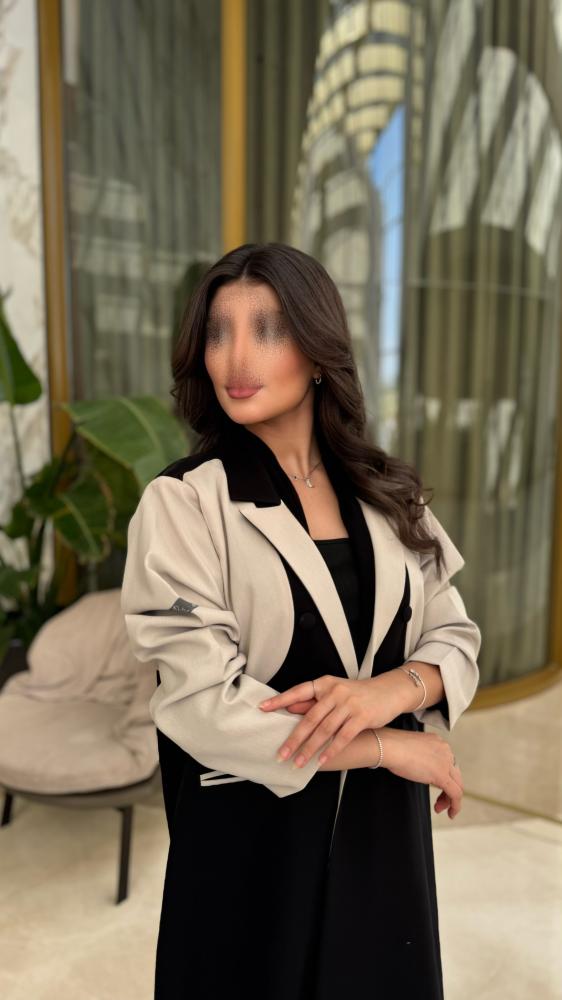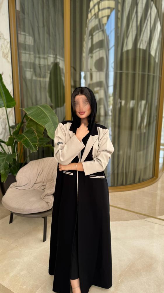 بليزر الدوام لون بيجيالقصه /بليزرالقماش الاكمام / كريب لمعهالقماش العبايه الاسود / كتانمبطنه بقماش بوجريهفيها جيبوب اماميهالون / بيجيالطرحه / ساده