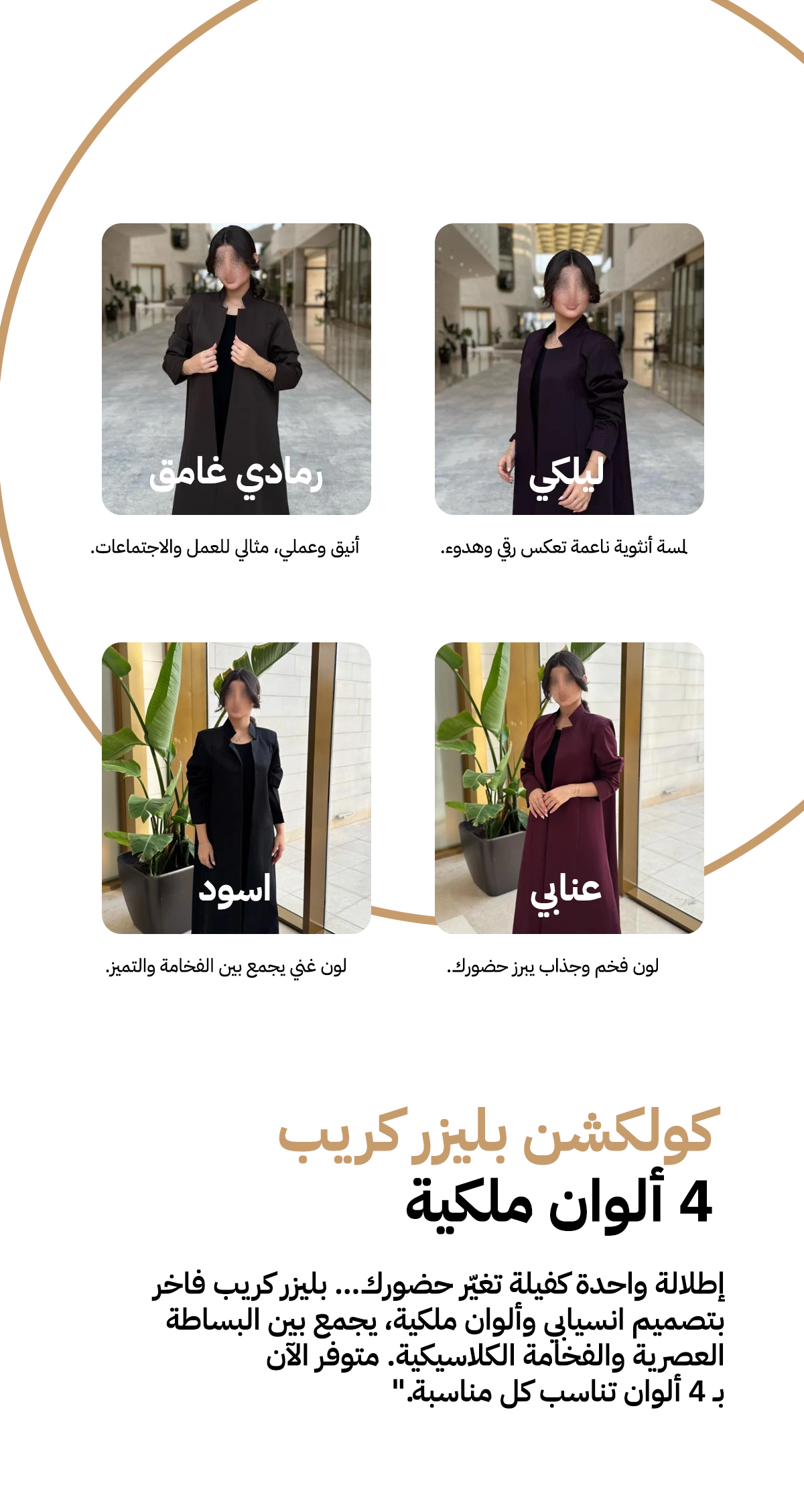 بليزر قماش كريب بدون لمعه طايح الوان متعددة