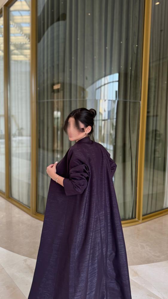 - القماش: كريب لمعة موف ليلكي، بخامة انسيابية وناعمة.
