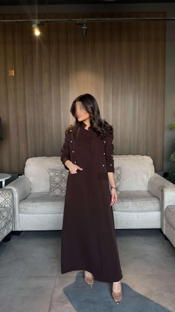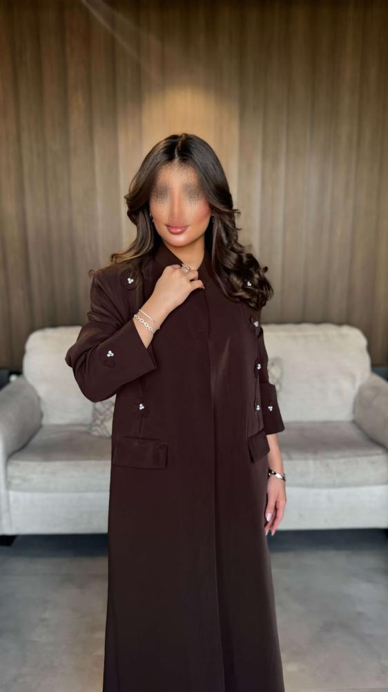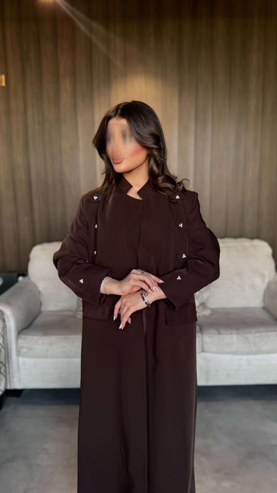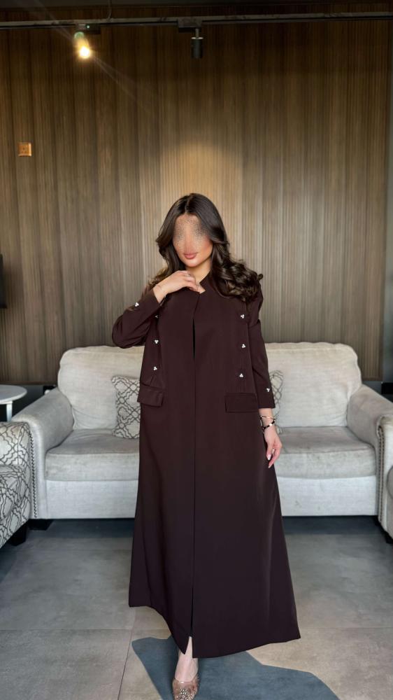 بليزر قماش كوبرا لولو صدر واكمامقصه / بليزرمبطنه بقماش بونجيهجيوب اماميهورد مع لولو في الصدر والاكماملون بنيطرحع ساده