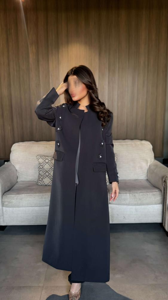 بليزر قماش كوبرا لولو صدر واكمام قصه / بليزر مبطنه بقماش بونجيه جيوب اماميه ورد مع لولو في الصدر والاكمام لون رمادي طرحع ساده