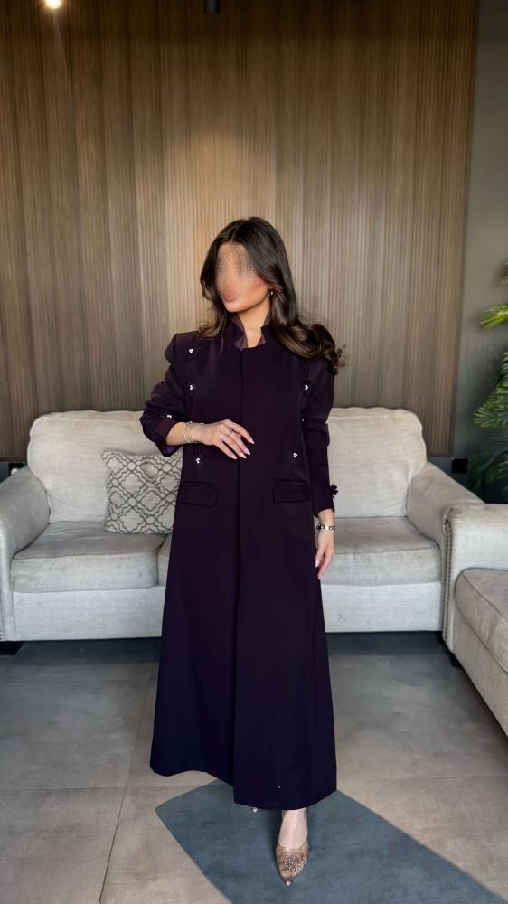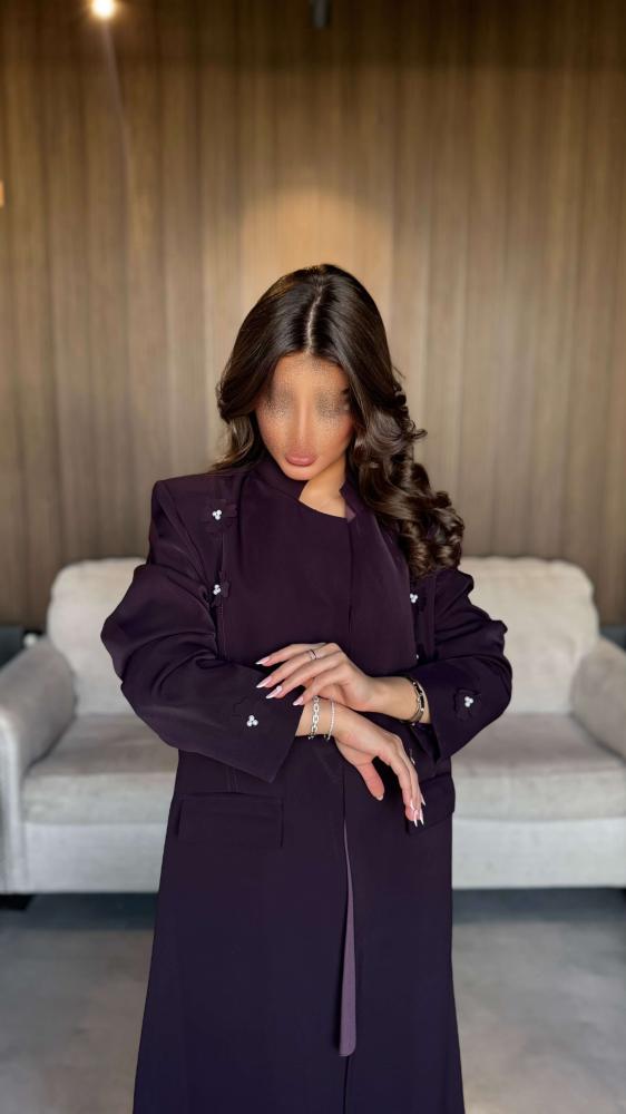 بليزر قماش كوبرا لولو صدر واكمام قصه / بليزر مبطنه بقماش بونجيه جيوب اماميه ورد مع لولو في الصدر والاكمام لون ليلكي طرحع ساده