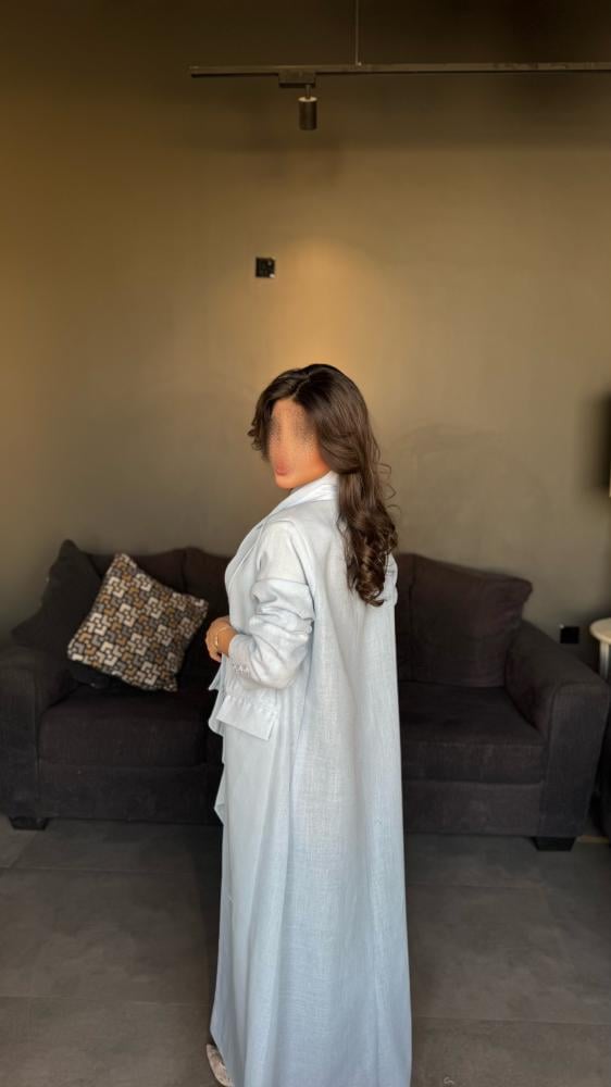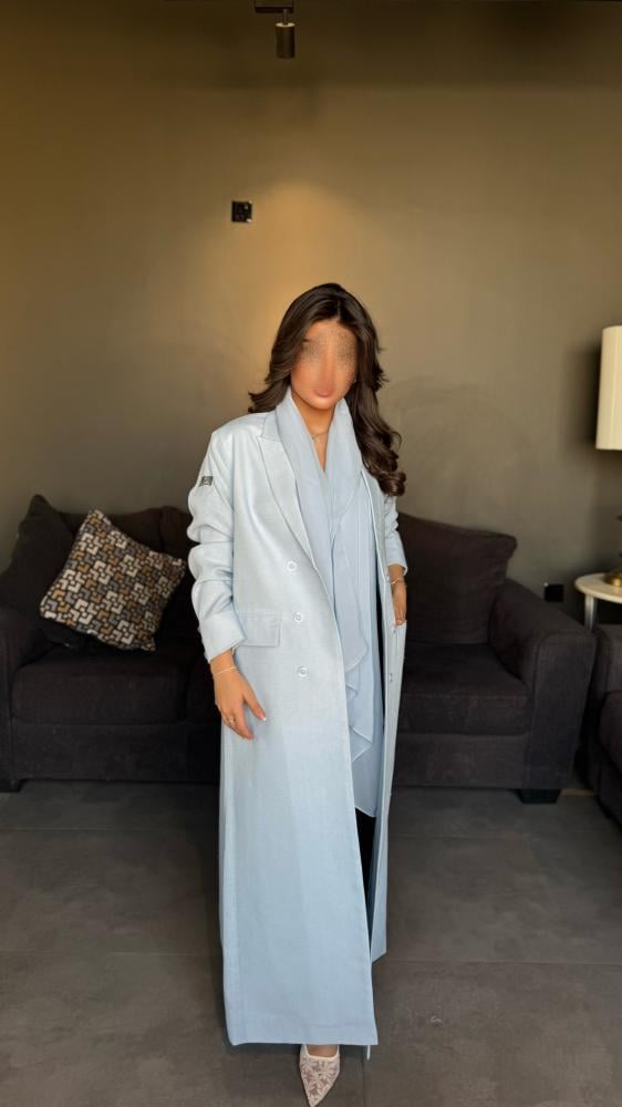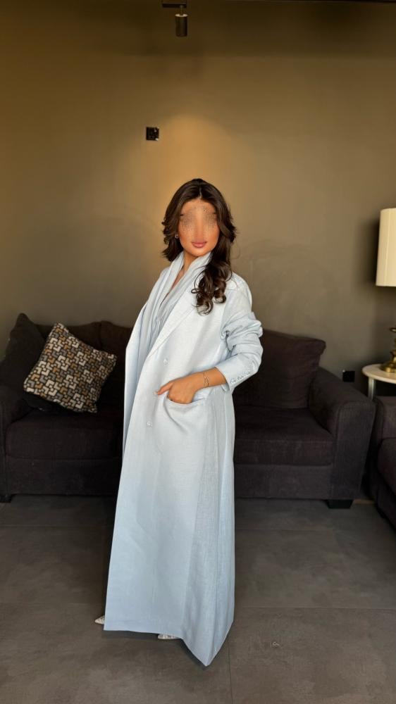 عباية بليزر لينن بيبي بلو تصميم عملي بلمسة فاخرة