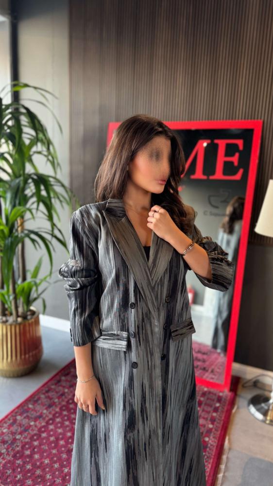 بليزر قماش جاكار كلاسيك مشخط قصه كلاسيك مبطن بقماش بورجيه من الداخللون القماش اسود على تيفاني فاتح مشخط جيوب اماميه التفصيل 10 ايام