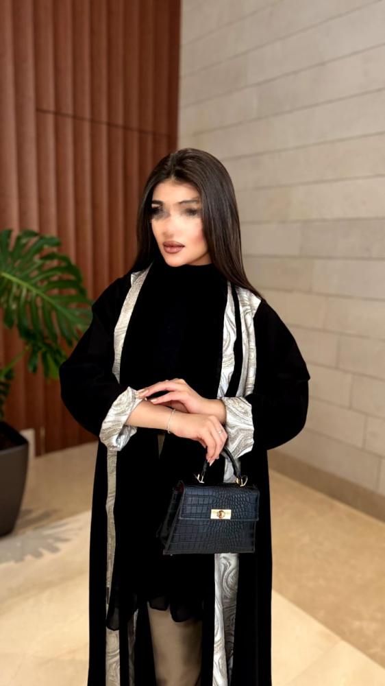 عبايه شادنقماش العبايه كتان اسودقماش التدخيلات جاكارقصه العبايه نص كلوشالتفصيل للعبايه خمسة ايامالطرحه طقم العبايه بطرف جاكار