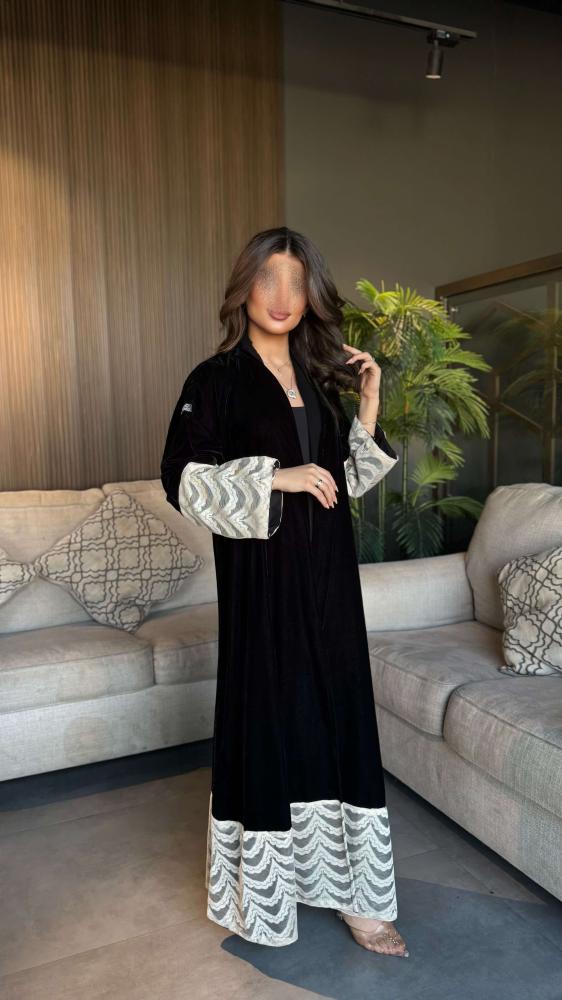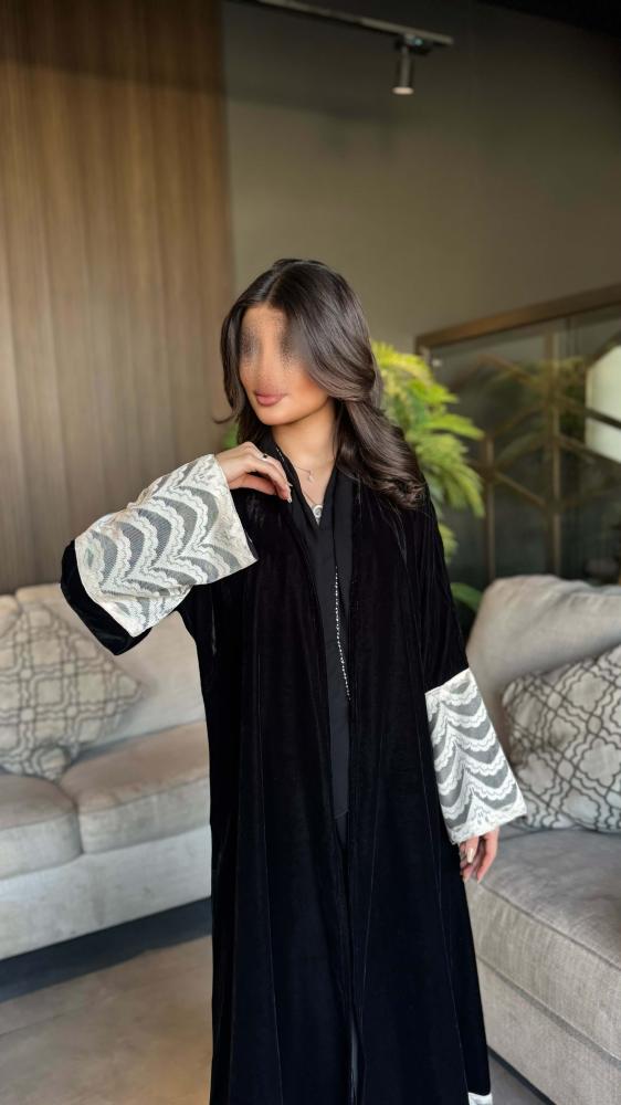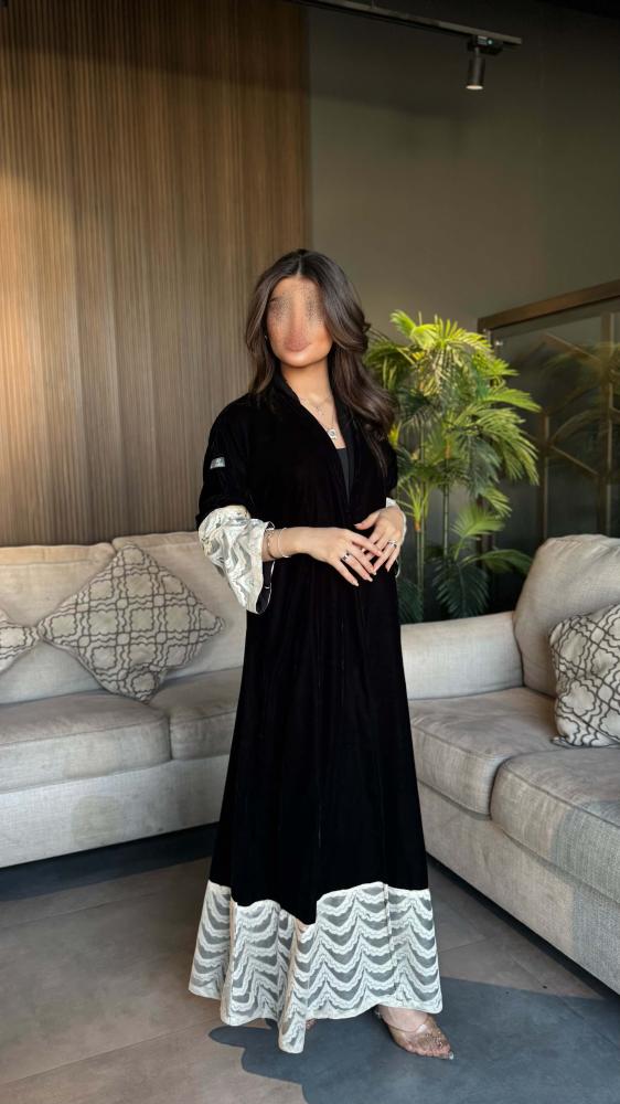 عبايه مخمل دانتيل سكري قصه العبايه / نص كلوش قماش العبايه / مخمل قماش التدخيلات / دانتيل سكري الطرحه ساده