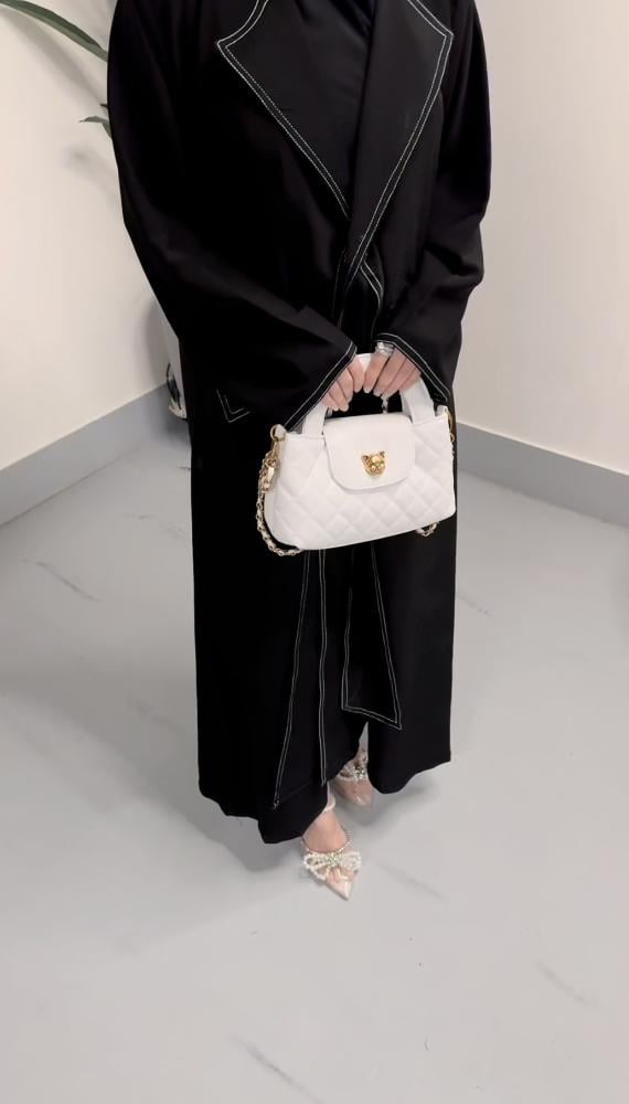 كه خيوط ابيض علي العبايه مع حزام متصل