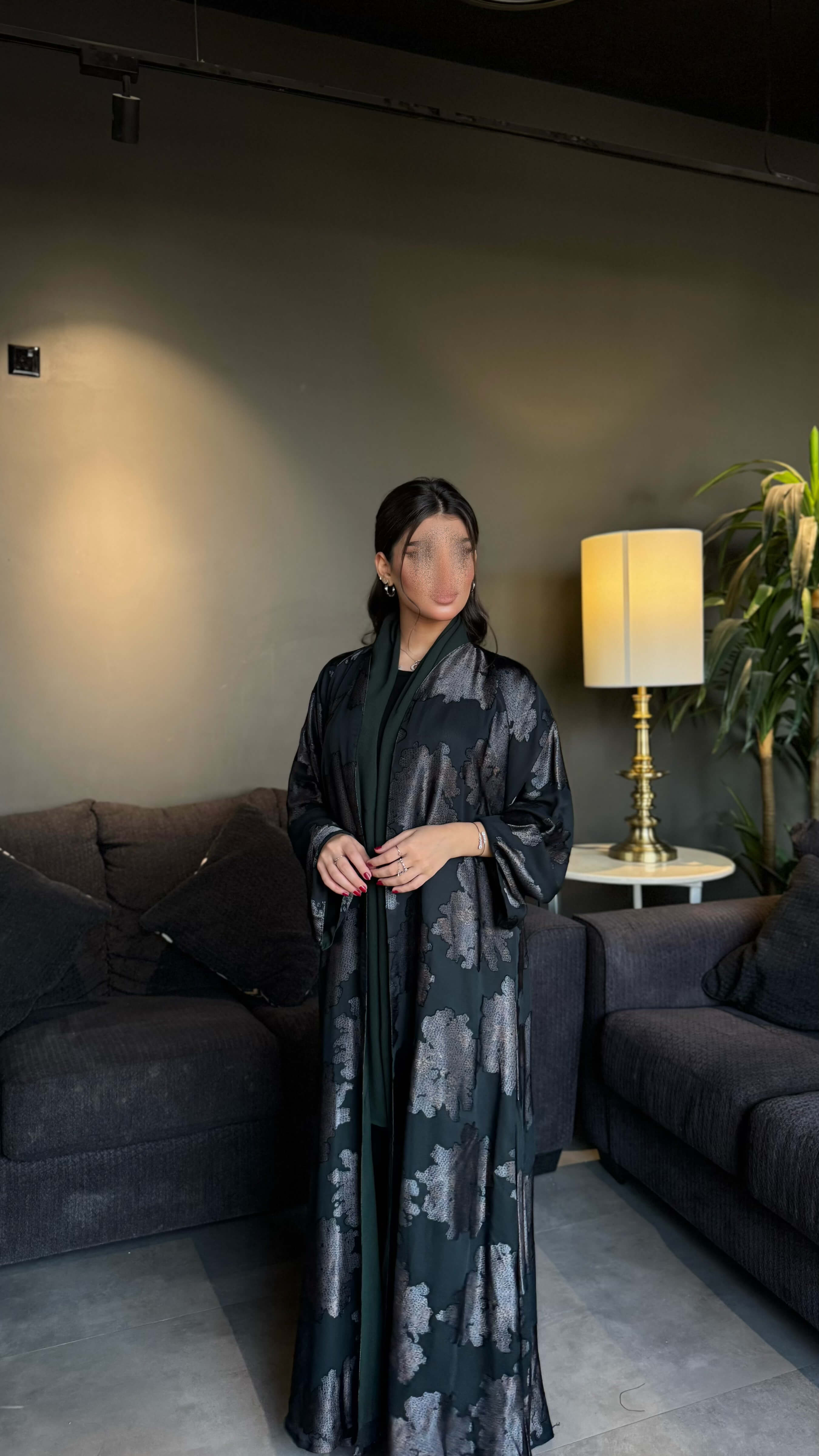 عبايه مشجره زيتي نص كلوش