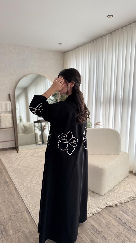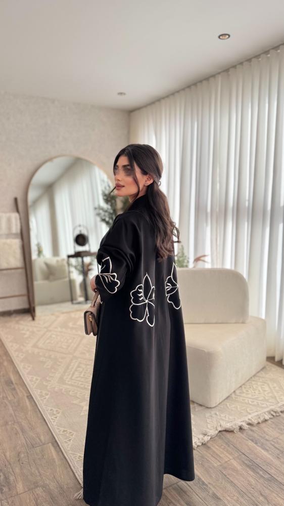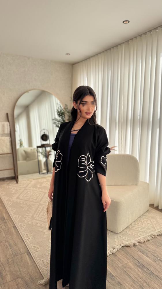عبايه نجود تطريز ابيض نص كلوش