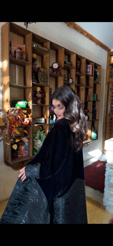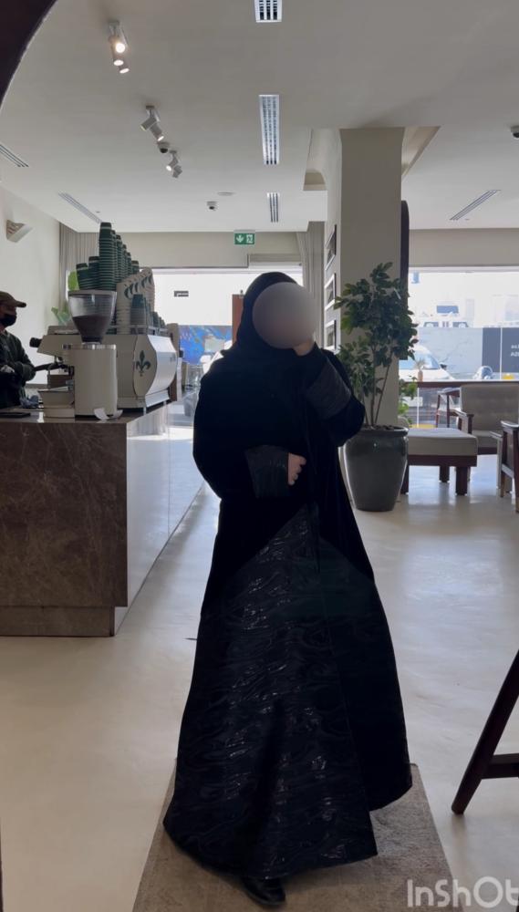 عبايه هيام جاكار اسودقماش العبايه مخملوقماش التدخيلات جاكارالقصه نص كلوشسفطه ثابتهالتفصيل 5 ايامطرحه طقم العبايه