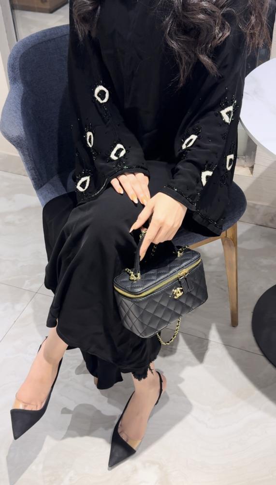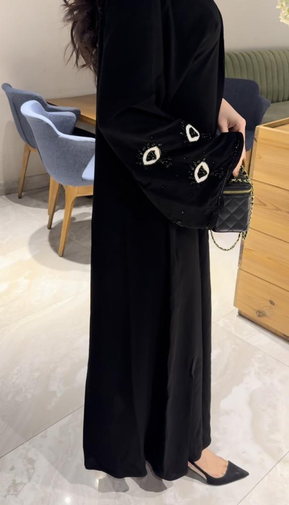 • تفاصيل العبايه : تطريز اكمام مع تحديد قيطان