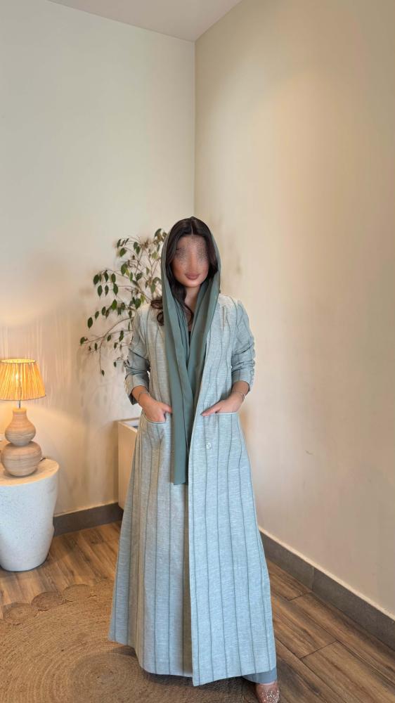 - اللون المعروض: مينت جرين (زيتي فاتح مخطط بدرجات ناعمة).