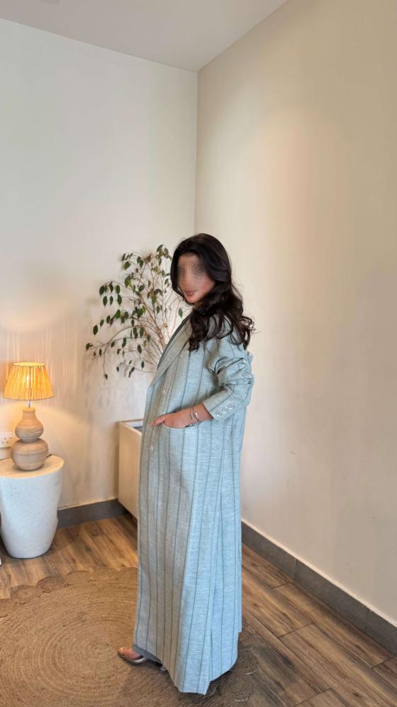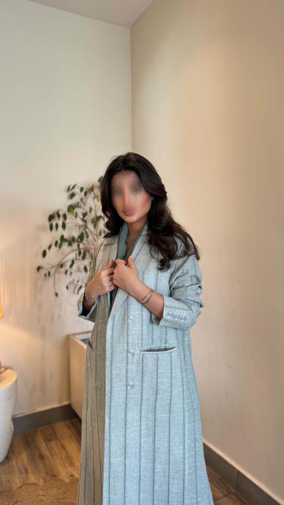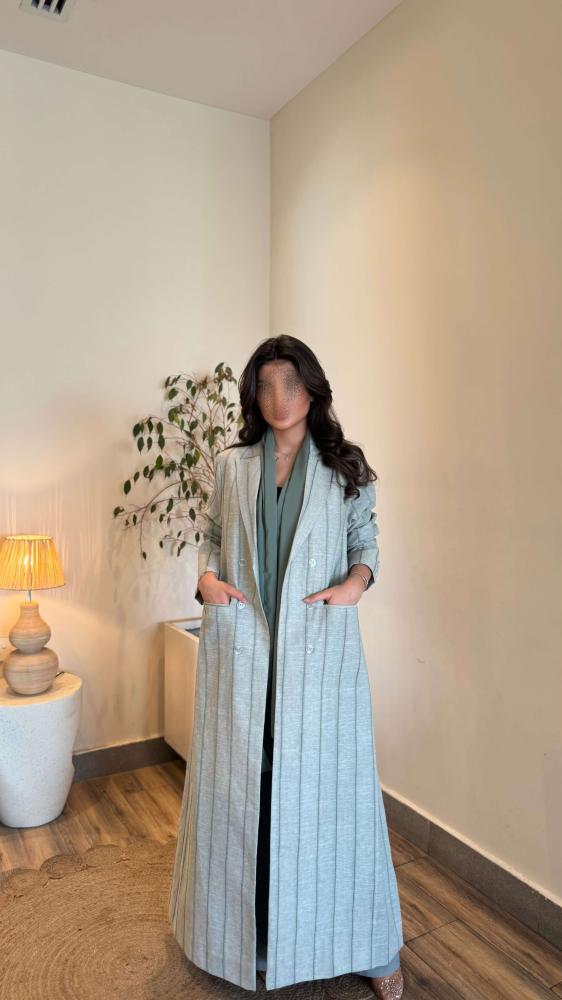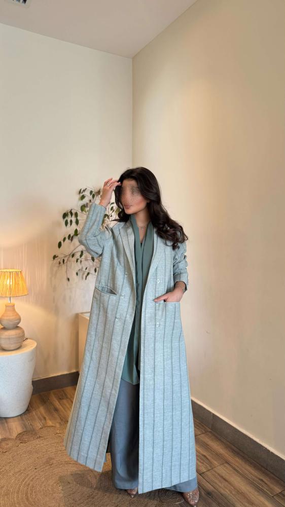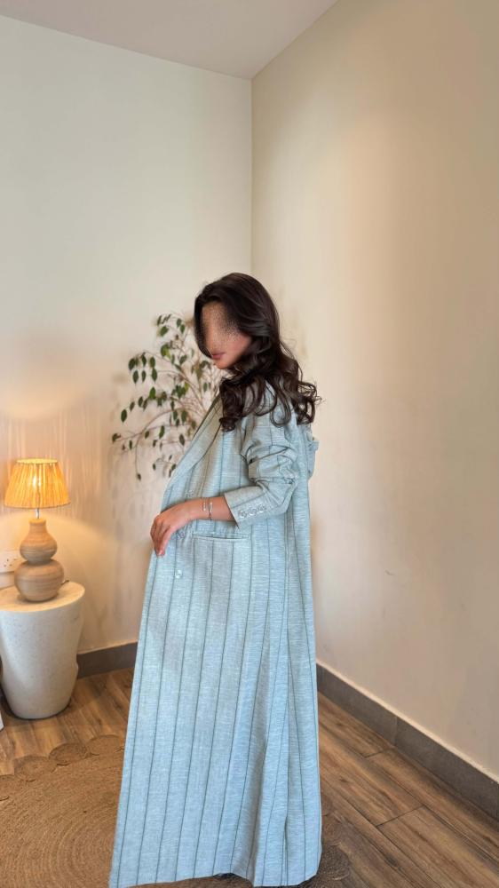 تميزي بإطلالة راقية مع بليزر مصنوع من قماش لينن خفيف بلون مينت جرين المخطط، مثالي للأجواء الصيفية ويمنحك مزيجًا متناغمًا بين الراحة والفخامة. تصميمه المستقيم مع الجيوب العملية يجعله خيارًا متكاملًا لكل مشاويرك اليومية والمناسبات الراقية.