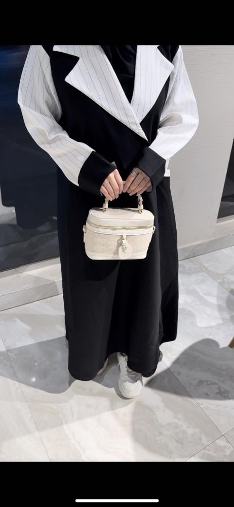 عبايه ريفاءقماش العبايه كتان مع ياقه واكمام قماش كتان ابيض مقلممع جيوب اماميهقصه العبايه نص كلوش لفالتفصيل 4 ايام