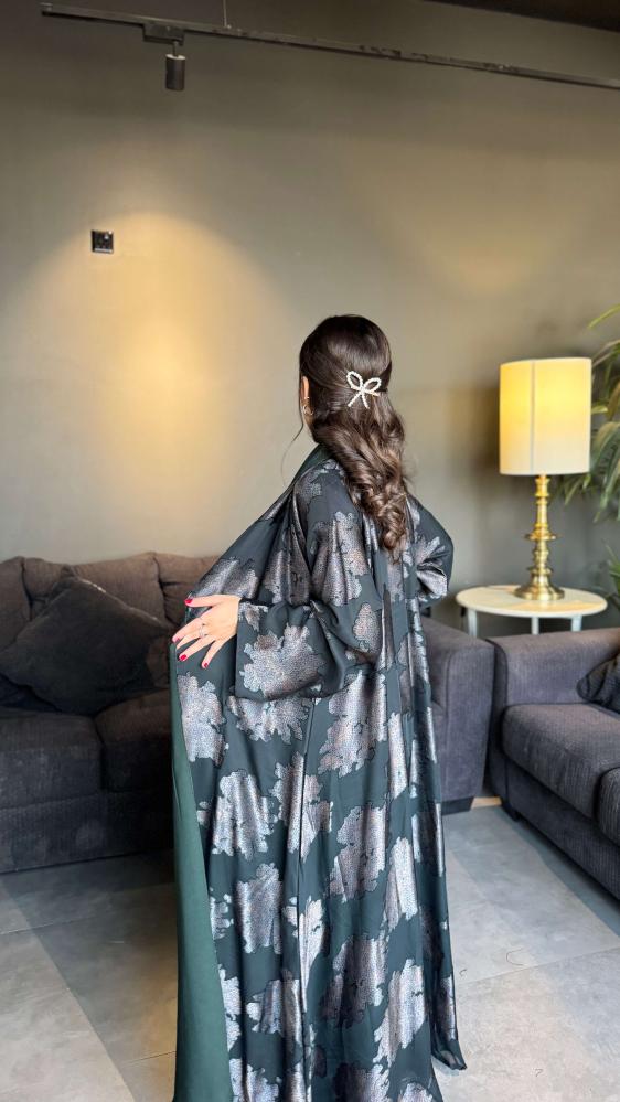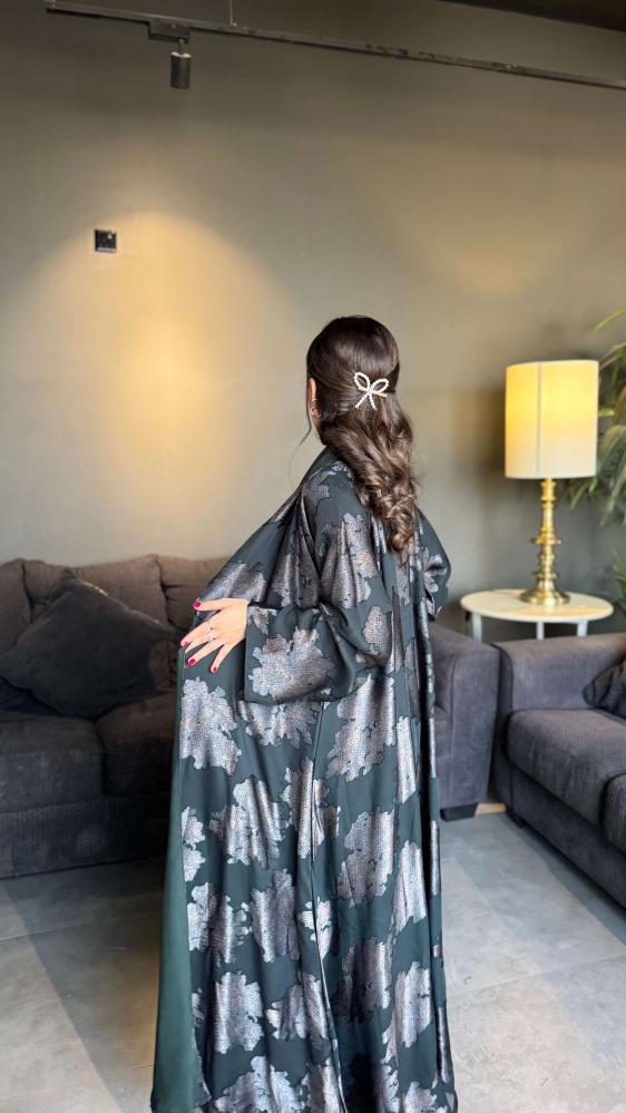 عبايه شيفون مشجره زيتيقماش العبايه شيفون مشجر بارد صيفيمبطنه بقماش طرحهقصه نص كلوشمدده التفصيل 5 ايام عملالطرحه ساده نفس الون
