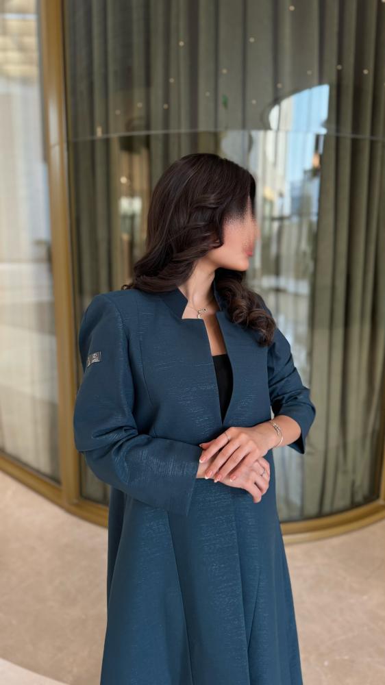 عباية صيفية مصممة بعناية لتجمع بين الراحة والفخامة، بلون تركواز.أنثوي عصري. تأتي بقصة بليزر أنيقة، تمنحك إطلالة متميزة فيجميع المناسبات، سواء الرسمية أو اليومية. خامتها الخفيفة تجعلها خيارًا مثاليًا لأجواء الصيف، أما تفاصيلها الدقيقة فتعكس ذوقًا راقيًا لامثيل له.